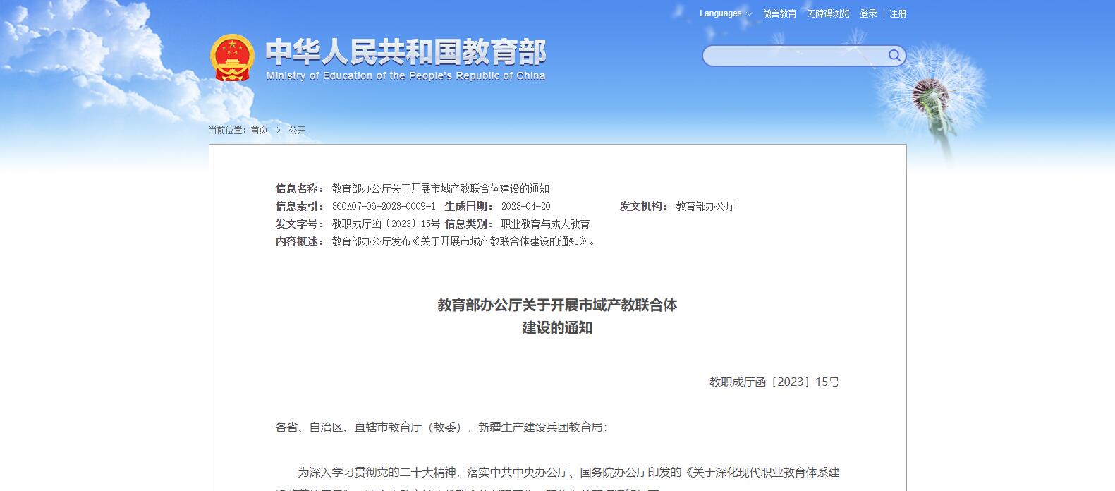 為深入學(xué)習(xí)貫徹黨的二十大精神,落實(shí)中共中央辦公廳、國(guó)務(wù)院辦公廳印發(fā)的《關(guān)于深化現(xiàn)代職業(yè)教育體系建設(shè)改革的意見》,決定啟動(dòng)市域產(chǎn)教聯(lián)合體創(chuàng)建工作。現(xiàn)將有關(guān)事項(xiàng)通知如下。