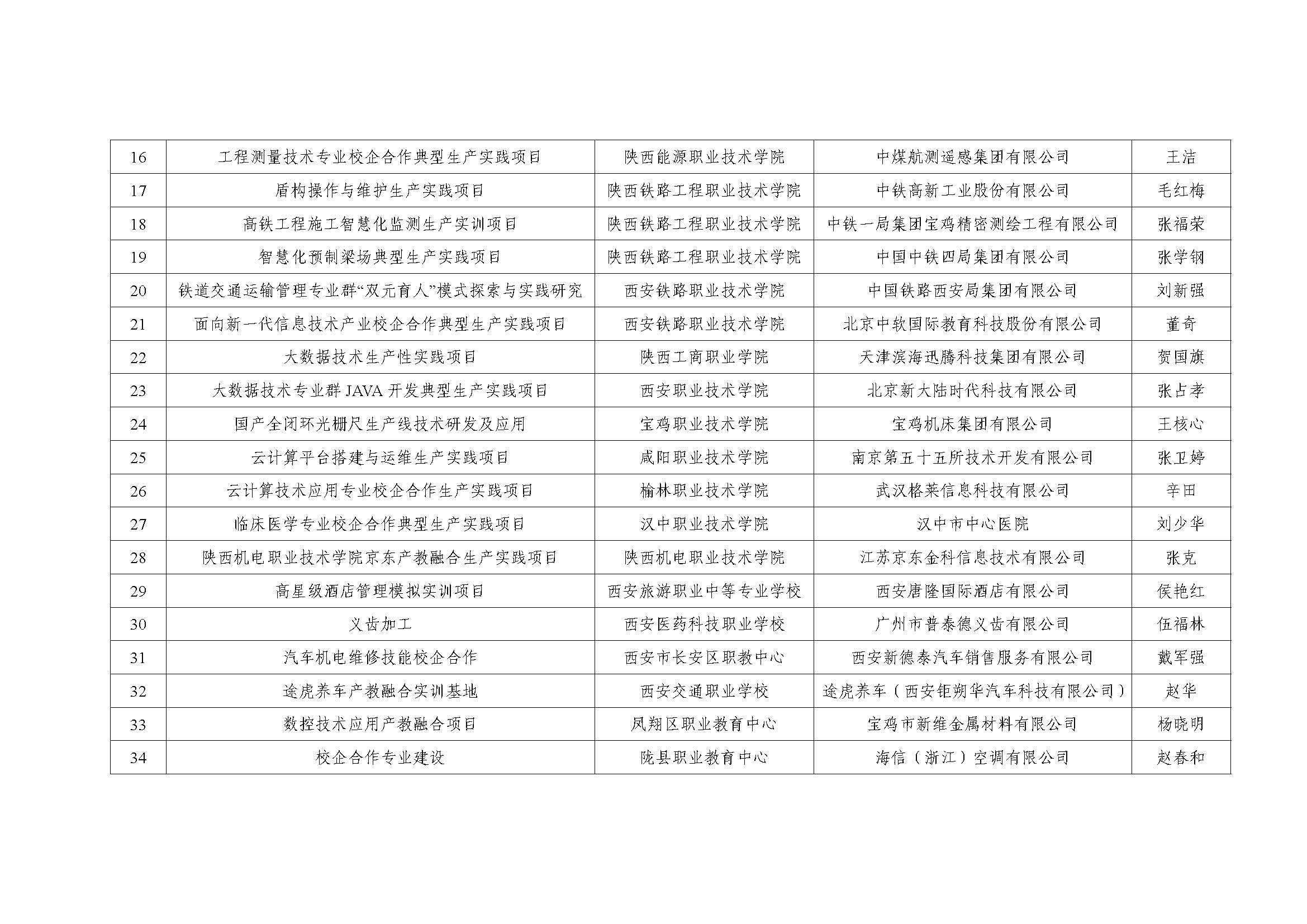 根據(jù)《陜西省教育廳辦公室關(guān)于加快推進(jìn)落實(shí)現(xiàn)代職業(yè)教育體系建設(shè)改革重點(diǎn)任務(wù)的通知》(陜教職辦〔2023〕33號(hào)),陜西省教育廳組織開展了2023年陜西職業(yè)教育一流核心課程、生產(chǎn)實(shí)踐項(xiàng)目、職業(yè)教育標(biāo)準(zhǔn)、資源和裝備等項(xiàng)目的申報(bào)工作。經(jīng)各地各校推薦、省教育廳初審,將符合申報(bào)條件的64門一流核心課程、51個(gè)校企合作典型生產(chǎn)實(shí)踐項(xiàng)目、14個(gè)具有國(guó)際影響力的職業(yè)教育標(biāo)準(zhǔn)、16個(gè)具有國(guó)際影響力的職業(yè)教育資源、5個(gè)具有國(guó)際影響力的職業(yè)教育裝備項(xiàng)目公示。