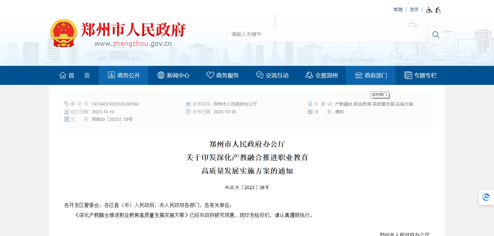 10月18日,鄭州市人民政府辦公廳印發(fā)《深化產(chǎn)教融合推進(jìn)職業(yè)教育高質(zhì)量發(fā)展實(shí)施方案》(簡(jiǎn)稱《方案》)。