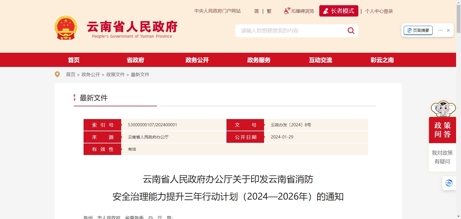近日,《云南省消防安全治理能力提升三年行動計劃(2024—2026年)》印發(fā),提出要支持省內(nèi)高校、職業(yè)院校加強(qiáng)“校消”合作,開設(shè)消防管理及救援技術(shù)等相關(guān)學(xué)歷教育,開辦消防救援學(xué)院等。