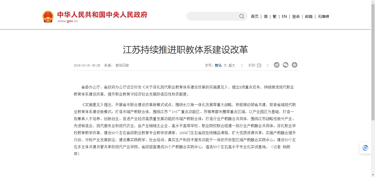 江蘇省省委辦公廳、省政府辦公廳近日印發(fā)《關(guān)于深化現(xiàn)代職業(yè)教育體系建設(shè)改革的實(shí)施意見》,提出8項(xiàng)重點(diǎn)任務(wù),持續(xù)推進(jìn)現(xiàn)代職業(yè)教育體系建設(shè)改革,提升職業(yè)教育對經(jīng)濟(jì)社會發(fā)展的適應(yīng)性和貢獻(xiàn)度。
