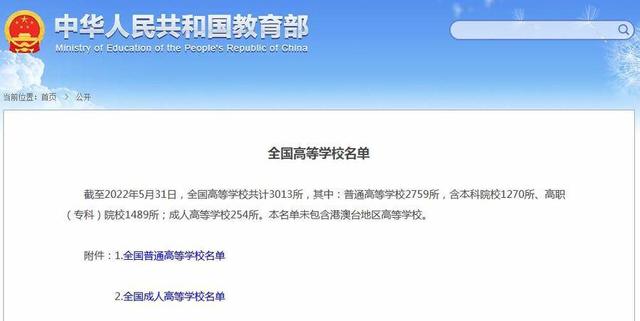 3013所!教育部發(fā)布全國高等學校最新名單
