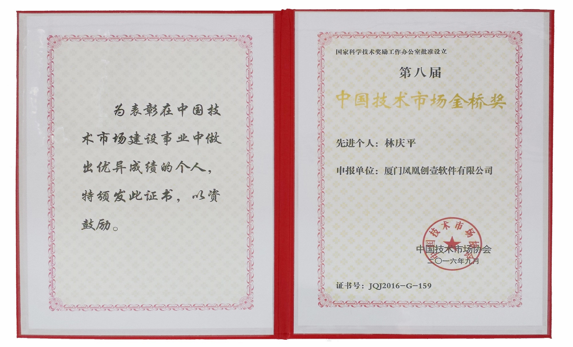 日前,中國技術(shù)市場協(xié)會公布了“第八屆中國技術(shù)市場金橋獎”獲獎名單,本司(廈門鳳凰創(chuàng)壹軟件有限公司www.iliveindc.com)總經(jīng)理兼技術(shù)總監(jiān)林慶平博士榮膺“第八屆中國技術(shù)市場金橋獎金橋獎......