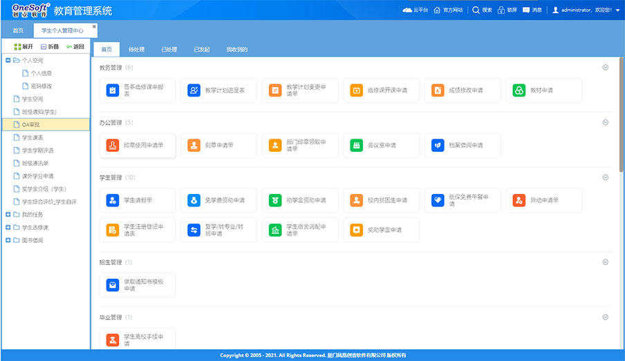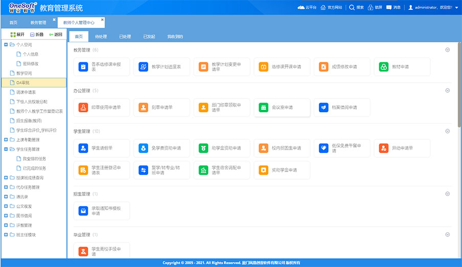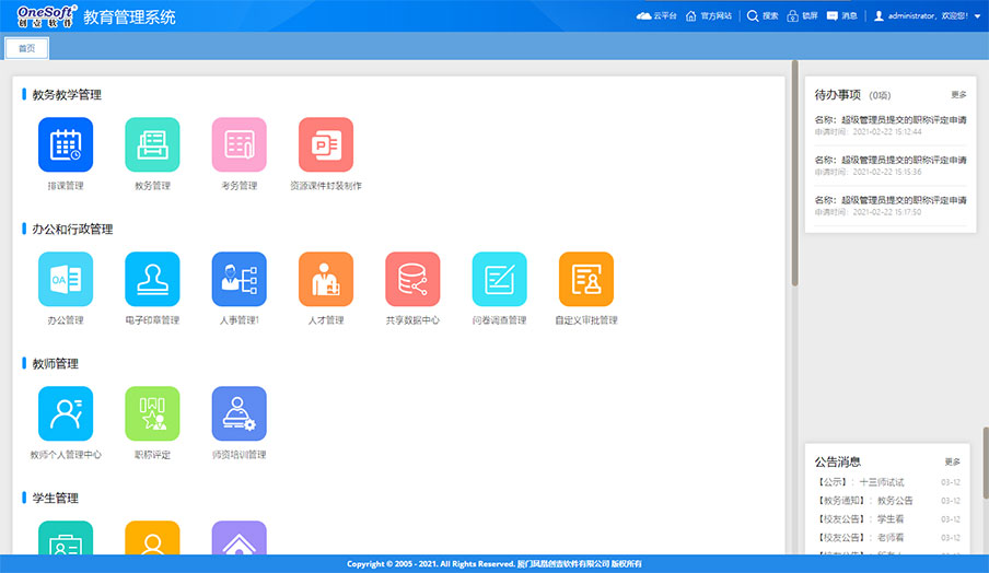 系統(tǒng)由原來的桌面級的管理系統(tǒng)轉變?yōu)槊嫦蛴脩籼峁┓盏墓δ軓姶蟮钠髽I(yè)級應用平臺。如工作報告、任務交辦、項目管理、工作任務管理、管理看板、學校知識庫、檔案管理等這些工具支撐日常工作,為教職工工作增效,為干部決策和管理賦能,可提大提升全員工作效率和學校管理水平。